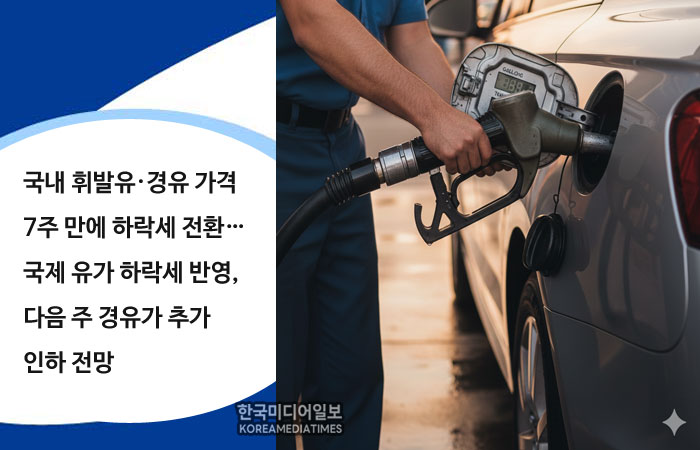 국내 휘발유·경유 가격 7주 만에 하락세 전환…국제 유가 하락세 반영, 다음 주 경유가 추가 인하 전망
