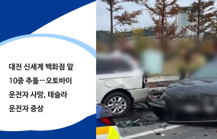 대전 신세계 백화점 앞 10중 추돌…오토바이 운전자 사망, 테슬라 운전자 중상