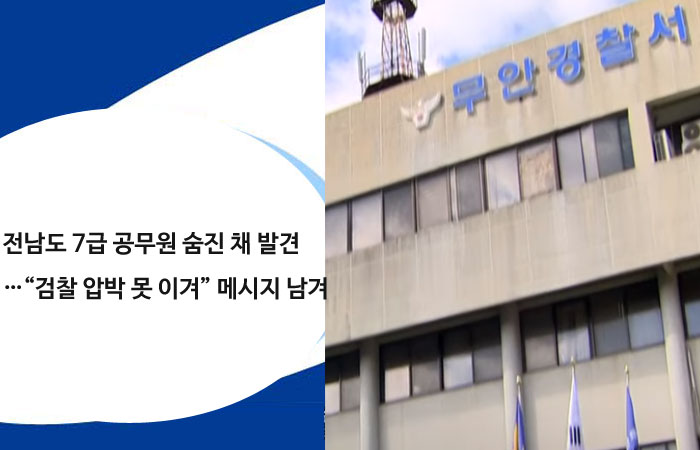 전남도 7급 공무원 숨진 채 발견…“검찰 압박 못 이겨” 메시지 남겨