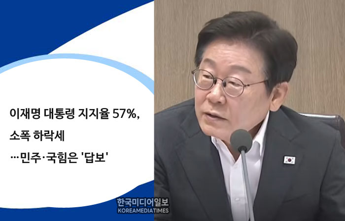 이재명 대통령 지지율 57%, 소폭 하락세…민주·국힘은 '답보'
