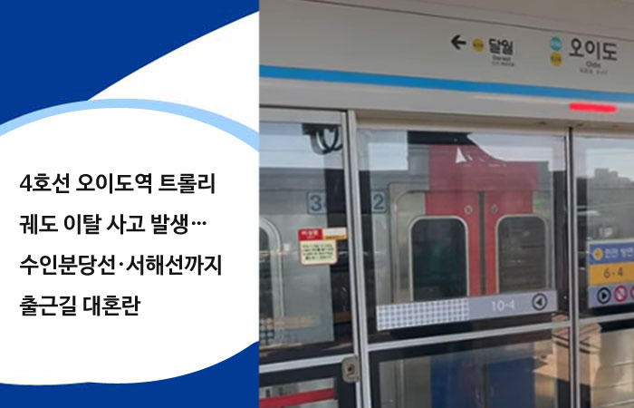 | 4호선 오이도역 트롤리 궤도 이탈 사고 발생…수인분당선·서해선까지 출근길 대혼란