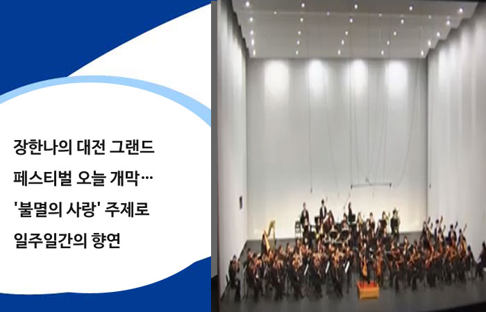 세계적인 첼리스트이자 지휘자인 장한나가 이끄는 '2025 장한나의 대전 그랜드 페스티벌'이 오늘(22일) 대전 예술의전당에서 화려한 막을 올렸다. 올해 '불멸의 사랑'을 주제로 열리는 이번 축제는 앞으로 일주일간 세계 최정상급 연주자들과 지역 음악인, 시민들이 함께 어우러지는 다채로운 .. 대전지국 | 09-22 09:58