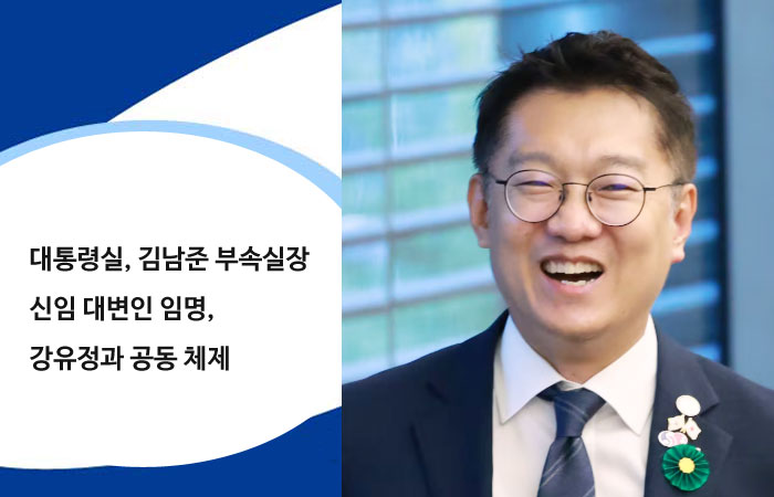 속보) 대통령실, 김남준 부속실장 신임 대변인 임명, 강유정과 공동 체제