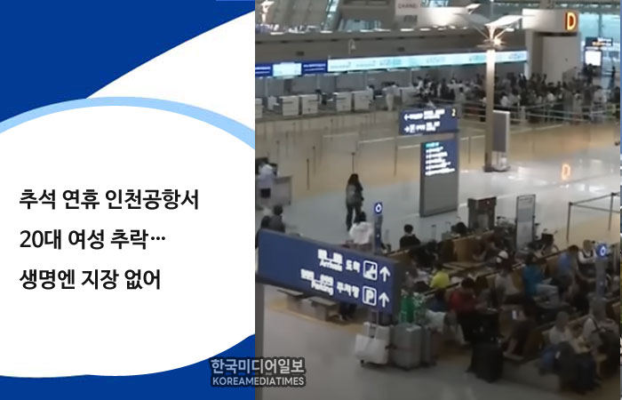 추석 연휴로 인파가 몰린 인천국제공항에서 20대 여성이 터미널 3층에서 1층으로 추락하는 아찔한 사고가 발생했다.