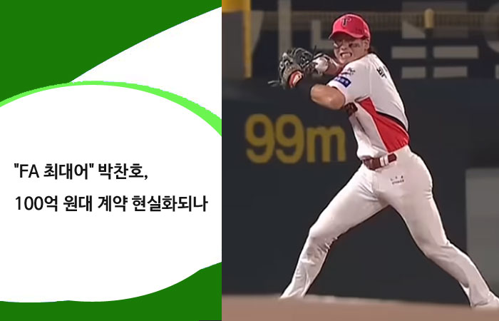 FA A등급이 유력한 박찬호의 몸값은 최소 80억 원에서 시작해 경쟁 구도에 따라 100억 원을 훌쩍 넘길 수 있다는 전망이 지배적이다. 최근 FA 시장의 가치 평가 기준인 1WAR당 5~6억 원을 적용하면 약 75억에서 90억 원 사이의 가치로 평가되지만, 이는 최소 보장 금액에 가깝다. 내야의 사령관이자 수비의 핵심인 유격수 포지션의 희소성과 30세라는 젊은 나이는 그의 가치를 더욱 끌어올리는 요소다.