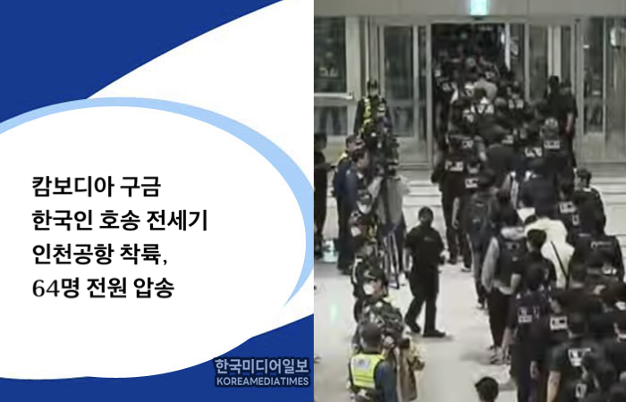 캄보디아에서 대규모 온라인 금융 사기 범죄에 연루된 혐의를 받는 한국인 64명이 전세기를 통해 국내로 강제 송환됐다. 18일 오전 8시 35분경 인천국제공항에 착륙한 대한항공 KE9689편은 일반 승객이 아닌, 캄보디아 범죄 조직에 몸담았던 피의자들을 실어 나른 특수 작전기였다. 이들의 국내 송환은 동남아시아 일대에 만연한 온라인 사기 범죄 조직을 뿌리 뽑겠다는 정부의 강력한 의지를 상징하는 장면으로, 해외 도피 사범에 대한 추적이 새로운 국면을 맞았음을 알렸다.