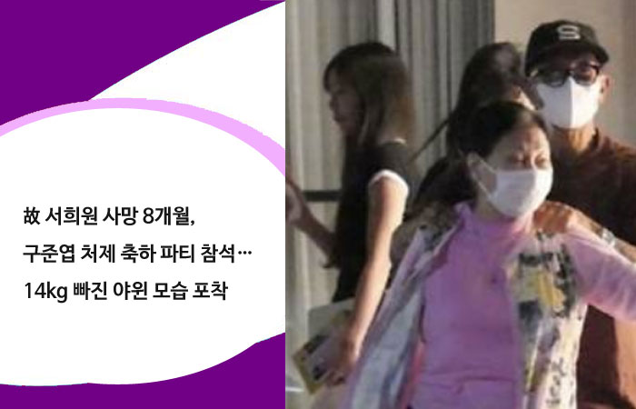 가수 구준엽이 아내인 고(故) 서희원의 사망 이후 8개월여 만에 처가 공식 행사에 모습을 드러냈다. 아내를 잃은 큰 슬픔으로 체중이 14kg 이상 빠진 것으로 알려진 그의 눈에 띄게 야윈 모습이 현지 매체를 통해 공개되며 주위의 안타까움을 사고 있다.