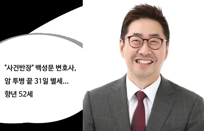 JTBC "사건반장", MBN "뉴스파이터" 등 다수의 시사 프로그램에 출연해 대중적인 법률 해설가로 활약해 온 백성문 변호사가 31일 새벽 별세했다. 향년 52세. 관계자에 따르면 고인은 31일 새벽 2시경 경기도 분당서울대병원에서 2년간의 암 투병 끝에 영면에 들었다.