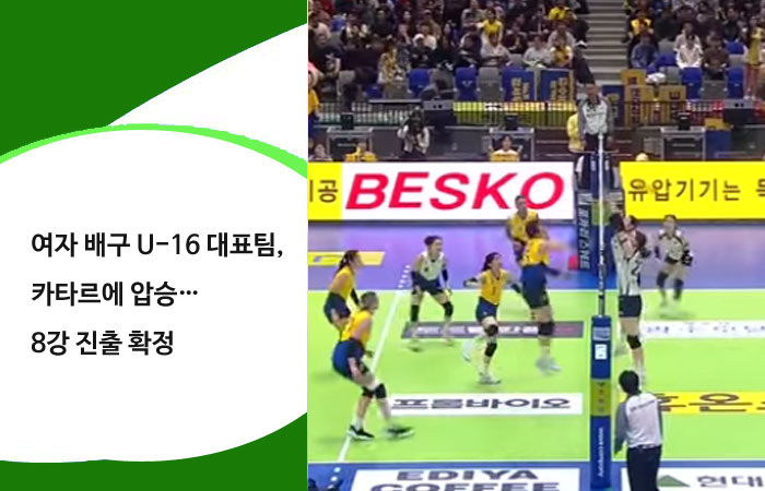 한국 여자 배구 청소년대표팀(U-16)이 아시아선수권 조별리그 마지막 경기에서 압도적인 경기력으로 카타르를 완파하며 8강 진출을 확정했다.