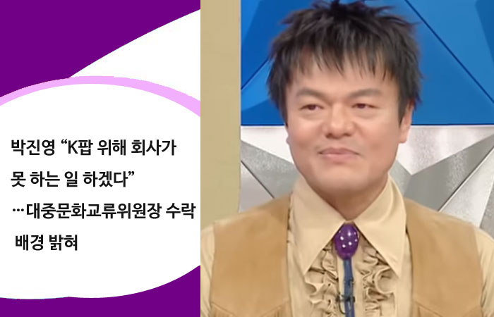 가수이자 프로듀서 박진영 대중문화교류위원회 위원장이 위원장직을 맡게 된 배경을 직접 밝혔다.