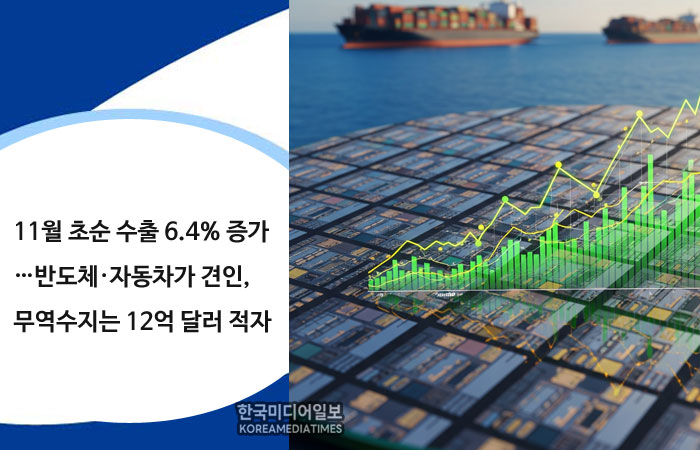 11월 들어 한국 수출이 반도체와 자동차를 중심으로 뚜렷한 회복세를 이어가고 있다. 조업일수가 작년과 동일했음에도 수출액이 6% 넘게 증가했으며, 반도체는 전체 수출의 4분의 1을 차지하며 수출 성장세를 견인했다.