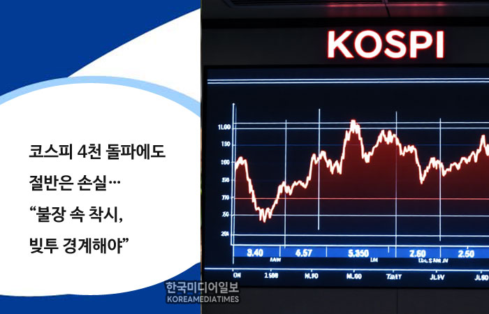국내 증시가 4천 선을 돌파하며 사상 최고 수준으로 치솟았지만, 실제 투자자들의 체감 수익률은 엇갈리고 있다. 삼성전자와 SK하이닉스를 중심으로 한 일부 대형주가 지수 상승을 견인했지만, 전체 종목의 절반 이상은 주가가 제자리이거나 하락한 것으로 나타났다. 전문가들은 “지수 착시에 속아 무리한 투자로 이어질 수 있다”며 주의를 당부했다.