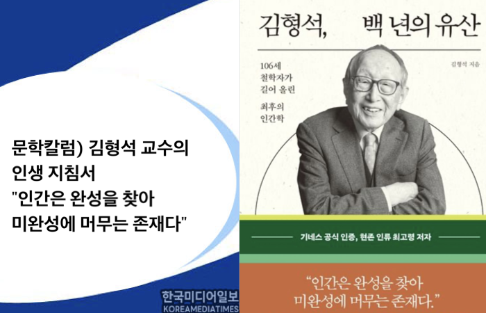 100세 철학자 김형석 교수가 인간 존재의 본질을 관통하는 깊은 통찰을 제시했다. 김 교수는 저서를 통해 "인간은 완성을 찾아 미완성에 머무는 존재다"라고 정의하며, 끝없는 추구와 영원한 불완전함이라는 역설적 삶의 의미를 심층적으로 분석했다. 이 명제는 인간의 모든 활동과 고뇌를 설명하는 근본 원리로 평가된다.