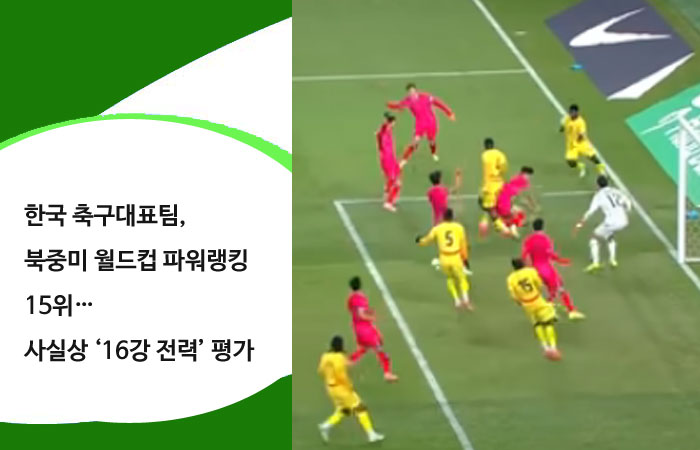 2026 국제축구연맹(FIFA) 북중미 월드컵 본선에 진출한 42개국의 전력을 비교한 최신 파워랭킹에서 한국 축구대표팀이 세계 15위로 평가됐다. 최근 A매치에서 반등 흐름을 만든 한국이 다시 10위권 중반으로 올라서며 사실상 월드컵 16강급 전력을 보유했다는 분석이 나왔다.