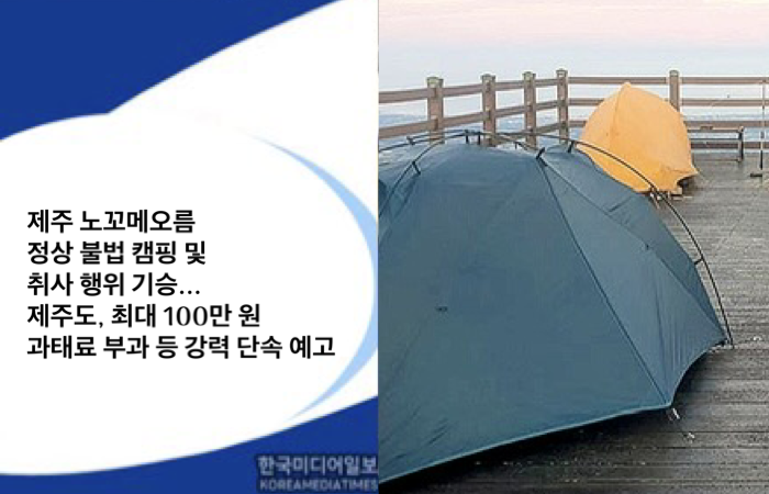 제주를 대표하는 오름 중 하나인 제주시 애월읍 유수암리 노꼬메오름 정상에서 불법적인 야영(비박)과 취사 행위가 잇따라 발생하면서 제주도가 이에 대한 강력한 단속과 법적 조치를 예고했다. 아름다운 야간 경관으로 인해 입소문이 나면서 늘어난 불법 캠핑족들로 인해 산불 위험성 증가는 물론, 일반 탐방객들의 불편과 자연 환경 훼손 우려가 커지고 있다.