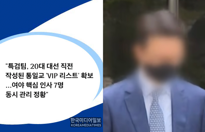 김건희 여사 주가조작 의혹 및 명품 수수 의혹을 수사하는 특별검사팀이 20대 대통령 선거를 코앞에 둔 시점에 통일교(세계평화통일가정연합) 측이 작성한 이른바 "VIP 선물리스트"를 확보하며 정치권 전방위에 걸친 대선 개입 및 영향력 행사 의혹이 불거지고 있다. 이 문건은 특정 정당에 국한되지 않고 당시 여야의 핵심 인사들을 아우르는 내용을 담고 있어 사안의 파장이 더욱 클 것으로 전망된다.