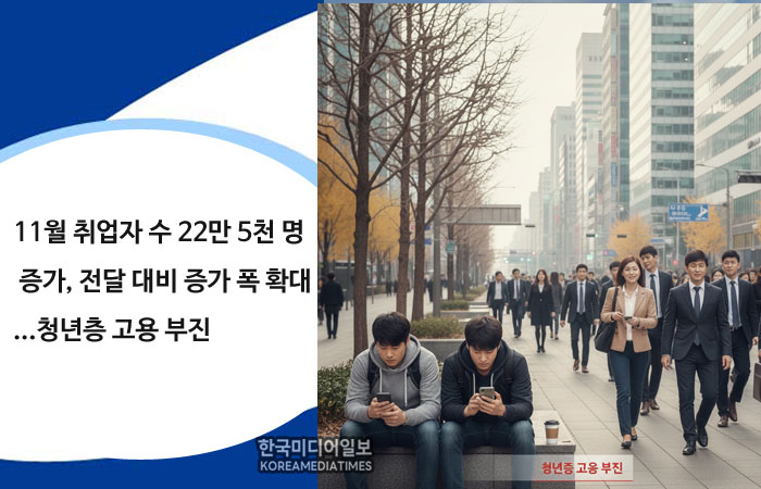 국가데이터처가 10일 발표한 "11월 고용동향"에 따르면, 지난달 취업자 수가 전년 동월 대비 22만 5천 명 증가하며 전달의 급감세를 벗어나 증가 폭을 확대했다. 11월 총 취업자 수는 2천904만 6천 명으로 집계되었다. 이는 9월 31만 2천 명에서 10월 19만 3천 명으로 급격히 줄었던 취업자 수 증가 폭이 11월에 3만 2천 명가량 다시 늘어나며 회복세로 전환된 수치다.