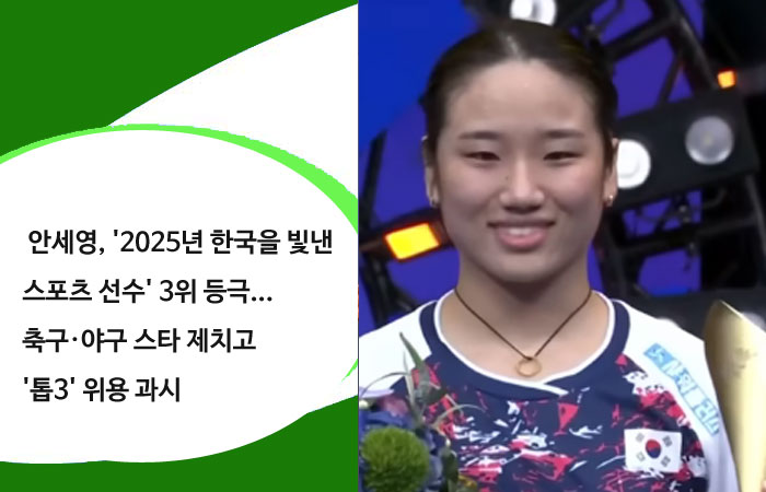 안세영, '2025년 한국을 빛낸 스포츠 선수' 3위 등극... 축구·야구 스타 제치고 '톱3' 위용 과시