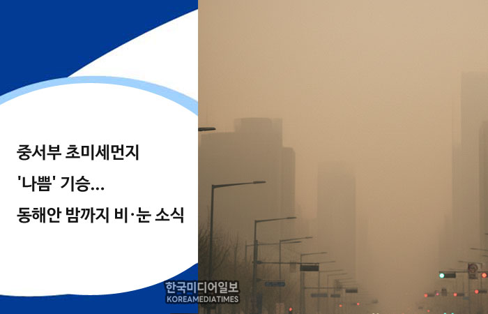 17일 전국적으로 대기 정체가 이어지며 서쪽 지방을 중심으로 공기가 매우 탁한 양상을 보이고 있다. 기상청과 국립환경과학원에 따르면 현재 초미세먼지가 한반도 상공에 머물면서 서울 서초구가 62마이크로그램, 경기 군포 64마이크로그램, 충남 아산 54마이크로그램 등 수도권과 충청 곳곳에서 평소보다 높은 농도를 기록하고 있다. 오늘 수도권과 충북 지방은 일평균 미세먼지 농도 '나쁨' 수준을 유지할 것으로 보이며, 영남 지방 역시 오전부터 낮 사이 일시적으로 먼지 농도가 치솟는 곳이 있어 호흡기 관리에 각별한 주의가 요구된다.