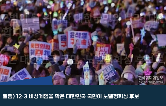 12·3 비상계엄을 막아낸 대한민국 국민을 두고 노벨평화상 후보론이 거론된다. 허황된 상상이라고 치부하기엔, 그날 광장을 지킨 시민들의 선택은 너무나 상징적이었다.