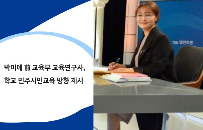한편 박미애 전 교육연구사는 교육부 교육연구사를 비롯해 유네스코학교 협의회 회장, 민주시민교육연구회 회장 등을 역임하며 학교 민주시민교육 정책 연구와 현장 확산을 위해 다양한 활동을 이어온 교육 전문가로 평가받고 있다.