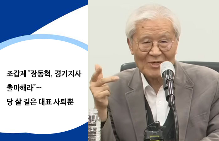 조갑제 조갑제닷컴 대표가 3일 국민의힘 장동혁 대표를 향해 차기 지방선거 경기지사 출마를 공개적으로 요구했다. 인물난을 겪는 험지에 대표가 직접 등판해 중앙 무대에서 물러나는 것만이 당이 생존할 유일한 방법이라는 주장이다.