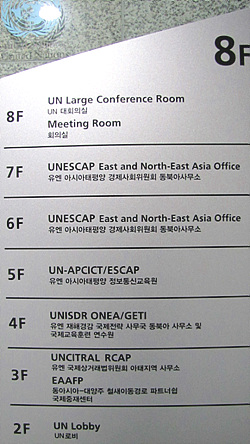 | G-타워 층별 안내판. 2~8 층에 모두 유엔기구가 입주해있다. |