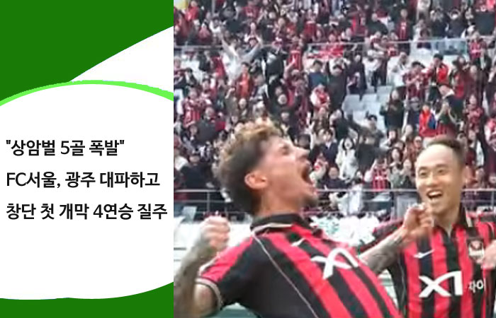 "상암벌 5골 폭발" FC서울, 광주 대파하고 창단 첫 개막 4연승 질주