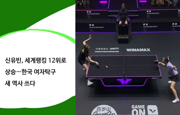 | 신유빈, 세계랭킹 12위로 상승…한국 여자탁구 새 역사 쓰다