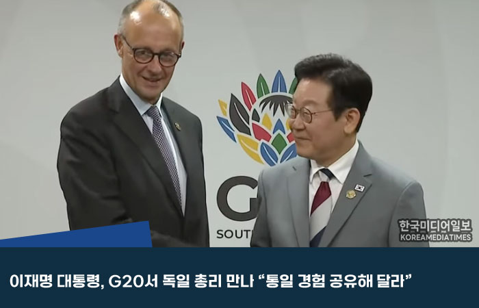 이재명 대통령이 주요 20개국(G20) 정상회의 참석을 위해 남아프리카공화국을 방문한 가운데, 프리드리히 메르츠 독일 총리와 회담을 갖고 독일의 통일 경험과 노하우 공유를 요청했다.이 대통령은 ..