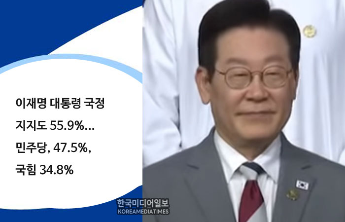 이재명 대통령 국정 지지도 55.9%... 민주당, 47.5%, 국힘 34.8%