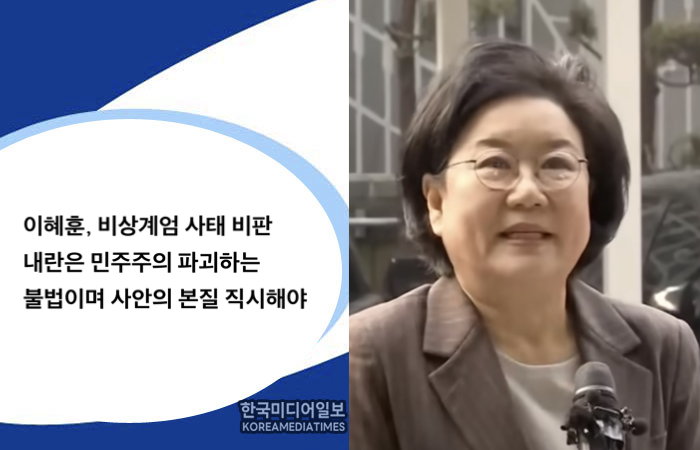 이혜훈 전 국민의힘 의원이 이번 사태의 위중함을 경고하며 강도 높은 비판을 제기했다. 이 전 의원은 이번 사태를 단순한 정치적 판단의 오류가 아닌 민주주의의 근간을 흔드는 내란이자 명백한 불법 ..