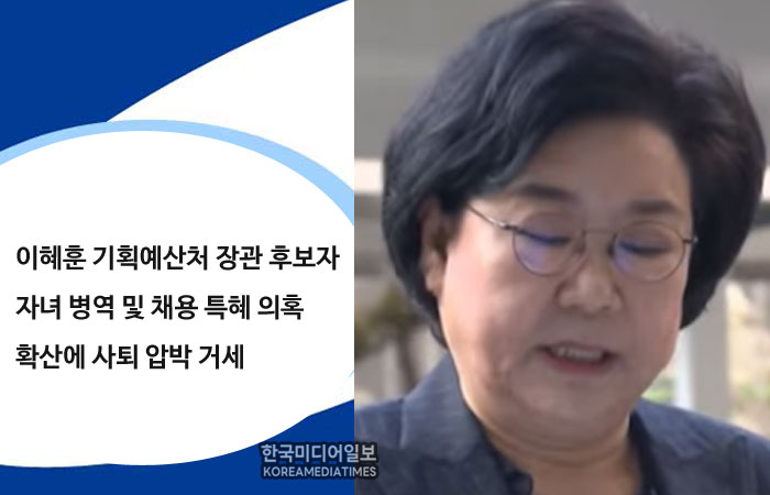 속보) 이혜훈 기획예산처 장관 후보자 자녀 병역 및 채용 특혜 의혹 확산에 사퇴 압박 거세