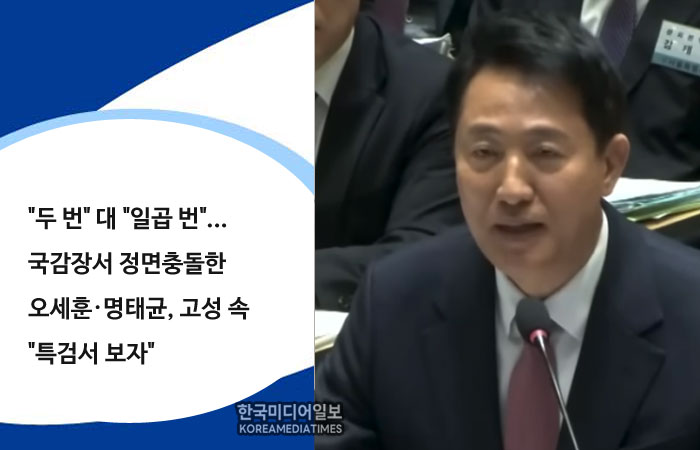 "두 번" 대 "일곱 번"...국감장서 정면충돌한 오세훈·명태균, 고성 속 "특검서 보자"
