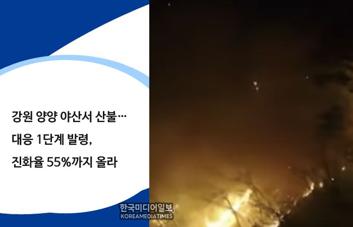 강원 양양 야산서 산불…대응 1단계 발령, 진화율 55%까지 올라