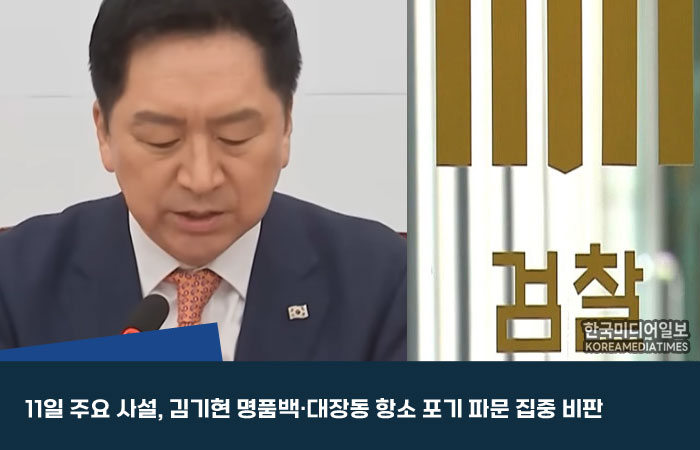 11일 주요 사설, 김기현 명품백·대장동 항소 포..