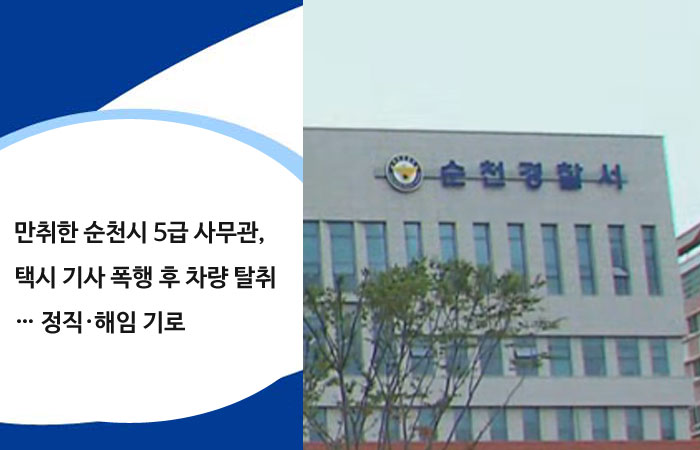 만취한 순천시 5급 사무관, 택시 기사 폭행 후 차량 탈취… 정직·해임 기로