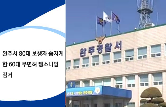 완주서 80대 보행자 숨지게 한 60대 무면허 뺑소니범 검거