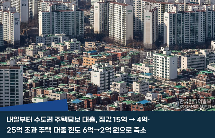 속보) 내일부터 수도권 주택담보 대출, 집값 15억 → 4억· 25억 초과 주택 대출 한도 6억→2억 원으로 축소