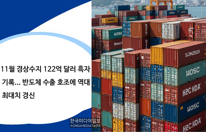 11월 경상수지 122억 달러 흑자 기록... 반도체 수출 호조에 역대 최대치 경신