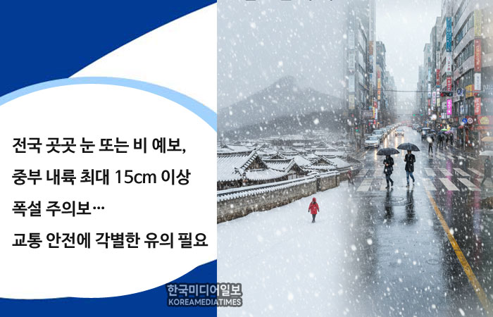 전국 곳곳 눈 또는 비 예보, 중부 내륙 최대 15cm 이상 폭설 주의보…교통 안전에 각별한 유의 필요