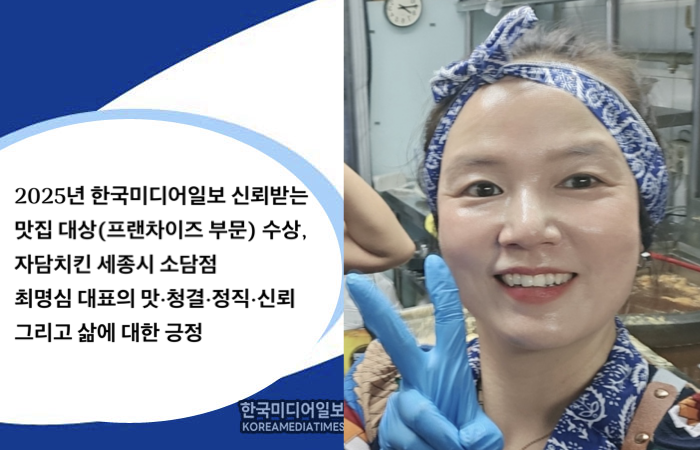 단독) 2025년 한국미디어일보 신뢰받는 맛집 대상(프랜차이즈 부문) 수상, 자담치킨 세종시 소담점 최명심 대표의 맛·청결·정직·신뢰 그리고 삶에 대한 긍정
