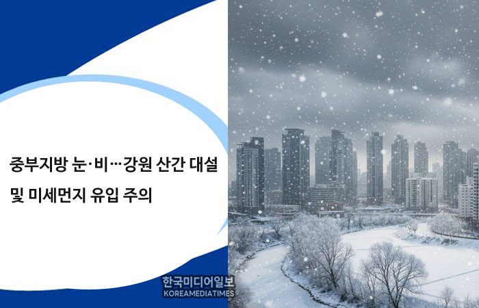 중부지방 눈·비…강원 산간 대설 및 미세먼지 유입 주의