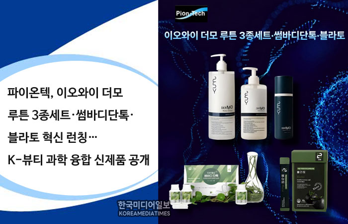 단독) 파이온텍, 이오와이 더모 루튼 3종세트·썸바디단톡·블라토 혁신 런칭…K-뷰티 과학 융합 신제품 공개