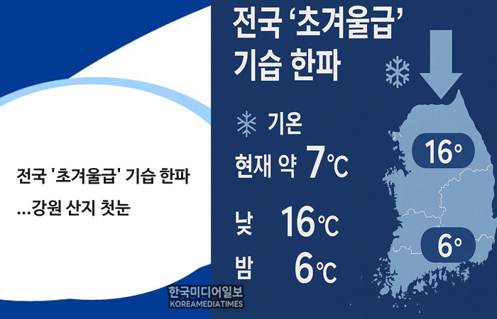 속보) 전국 '초겨울급' 기습 한파...강원 산지 첫눈