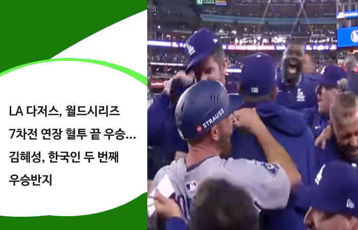 LA 다저스, 월드시리즈 7차전 연장 혈투 끝 우승...김혜성, 한국인 두 번째 우승반지