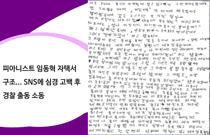 피아니스트 임동혁 자택서 구조...SNS에 심경 고백 후 경찰 출동 소동