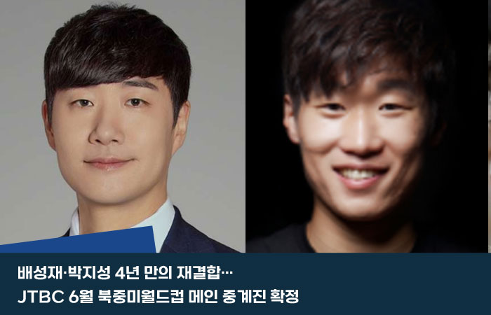 배성재·박지성 4년 만의 재결합…JTBC 6월 북중미월드컵 메인 중계진 확정