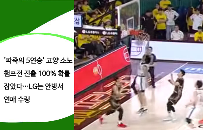 '파죽의 5연승' 고양 소노 챔프전 진출 100% 확률 잡았다…LG는 안방서 연패 수렁