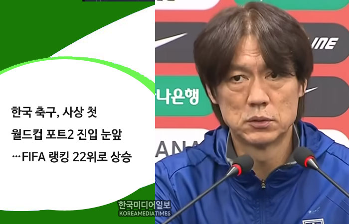 한국 축구, 사상 첫 월드컵 포트2 진입 눈앞…FIFA 랭킹 22위로 상승
